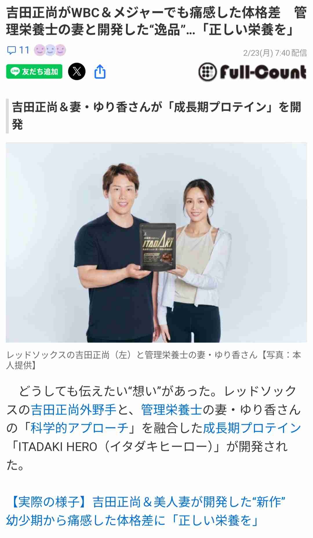 REDS◯X吉田正尚、エッヂ好みの妻とオリジナルプロテインを発売www
