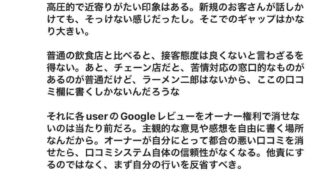 エッヂラーメン二郎さん、口コミに開示請求を匂わせてしまう…