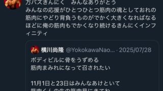 エッヂ最新のボディビルダー横川くん、お前らの想像の18倍やばいwww