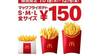 エッヂマックフライポテト全サイズ150円キャンペーン 11月18日から12月6日まで開催