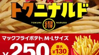 嫌儲マクドナルド、ポテトのM・Lサイズが250円になる「トクニナルド」キャンペーンを開催中!