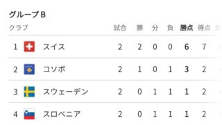 エッヂW杯ヨーロッパ予選グループ順位表がこちらwww