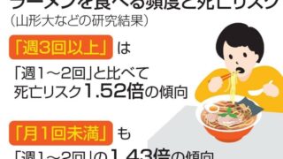 なんG“週3回以上ラーメン”死亡リスクが1.52倍