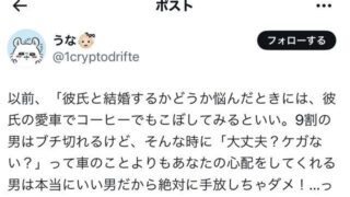 なんG女さん「彼氏と結婚するか悩むなら彼氏の車でコーヒーをぶち撒けなさい」