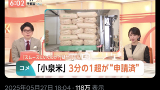 嫌儲「備蓄米」名称を改め「小泉米」に。主食のの危機を救った進次郎農水大臣の手柄を日本中に感謝の声が広がる☆🤗