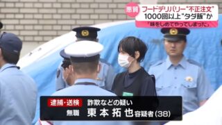 嫌儲出前を1000回タダ食いした拓也さんを逮捕