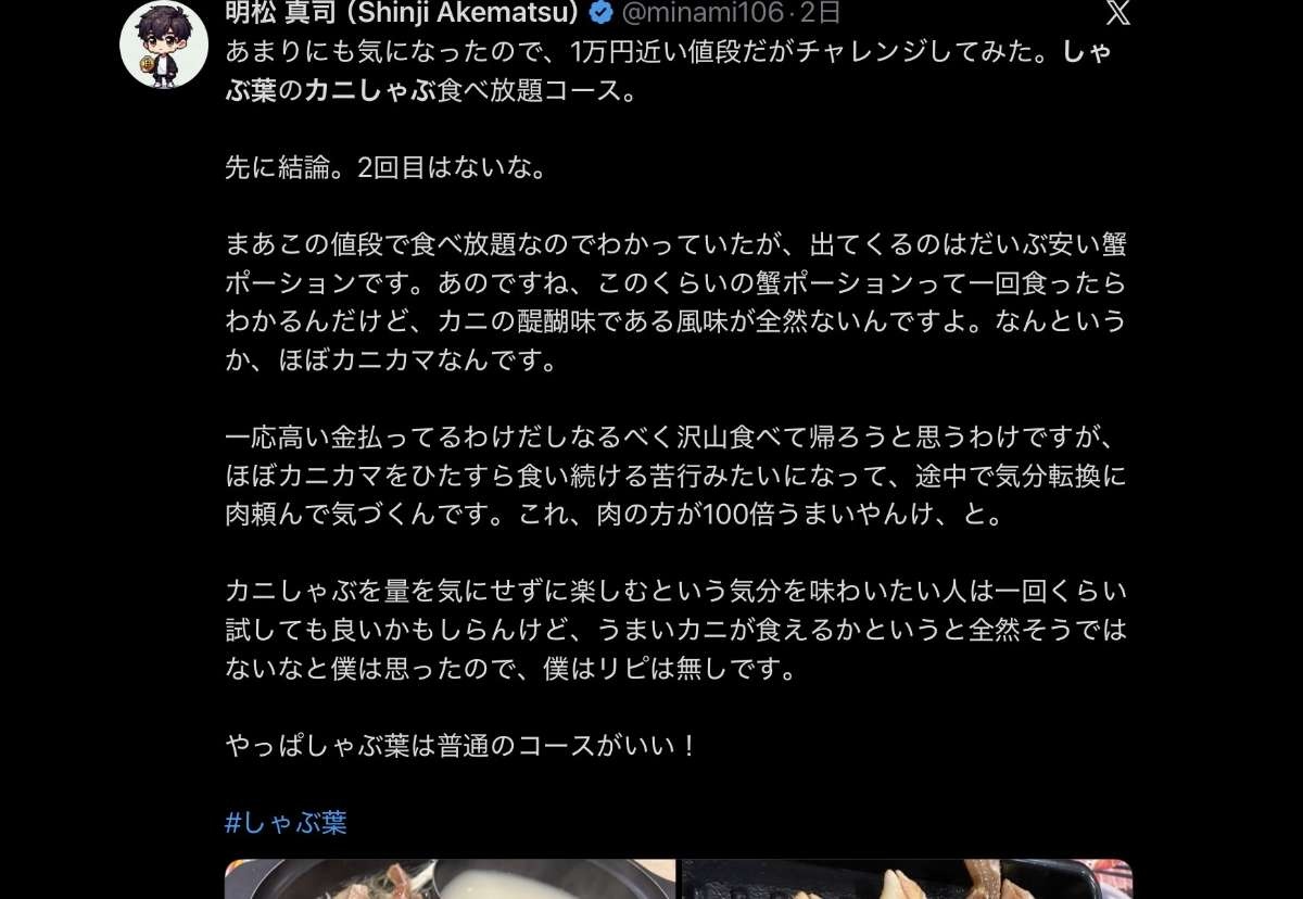 - しゃぶ葉のカニ食べ放題前格安でやって秒で無くなったよな