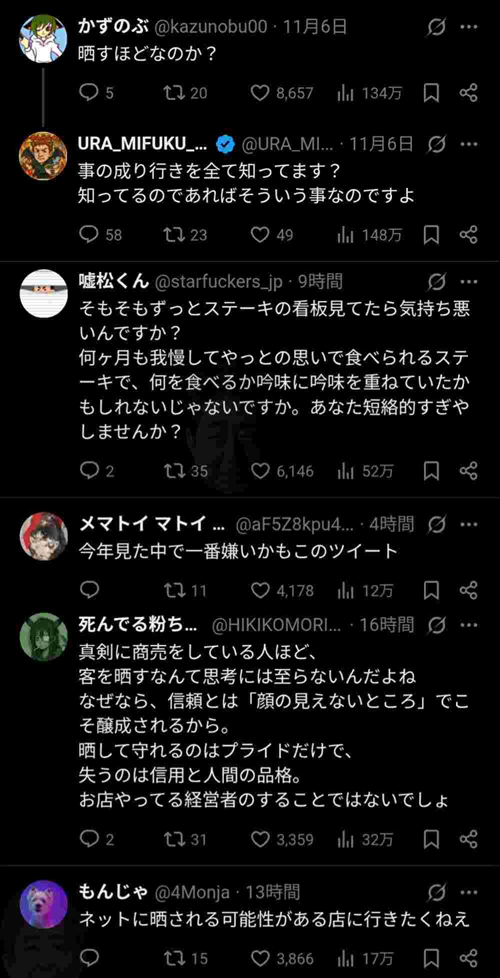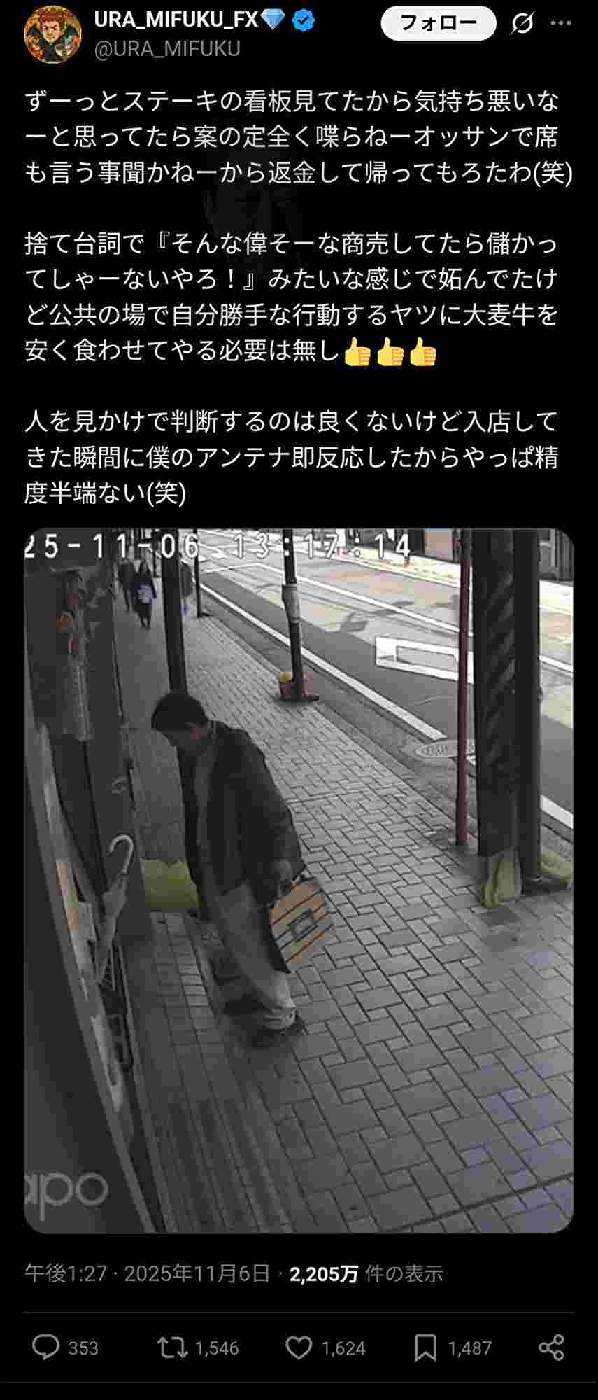 X「ステーキの看板見てるキモいオッサンがいた」晒して炎上🔥