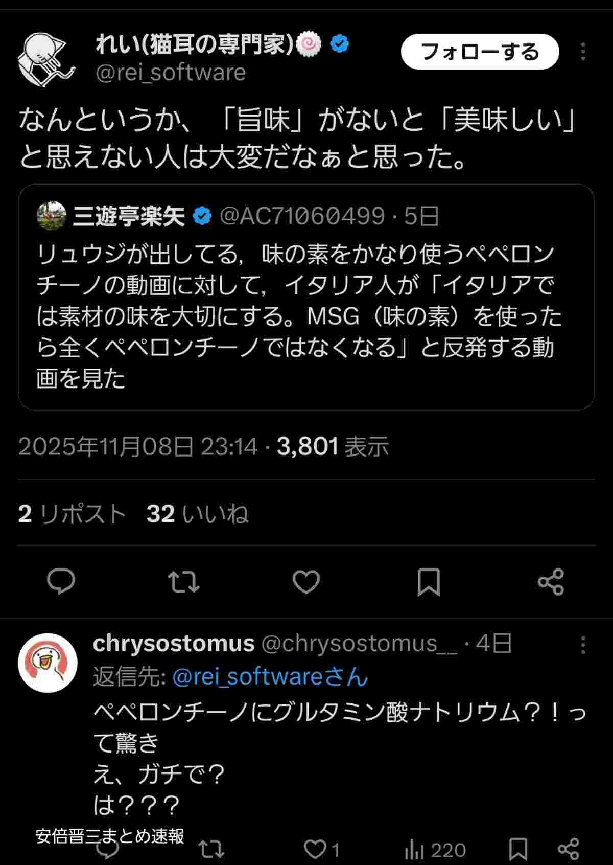 味の素を使わない場合は他の食材から補ってるだけ - 10 : 2025/11/13(木) 16:30:02.57 ID:6SZBOrWf0
