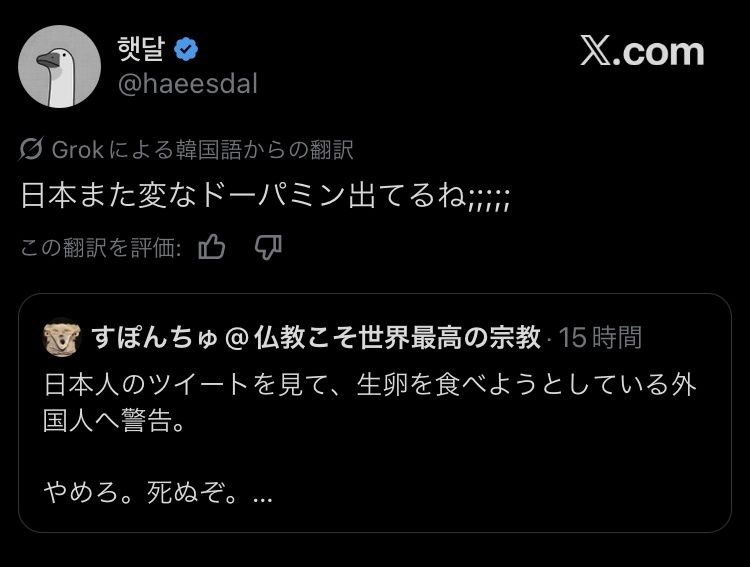 - 恥ずかしいから生卵なんかでドヤるのマジでやめてくれないか