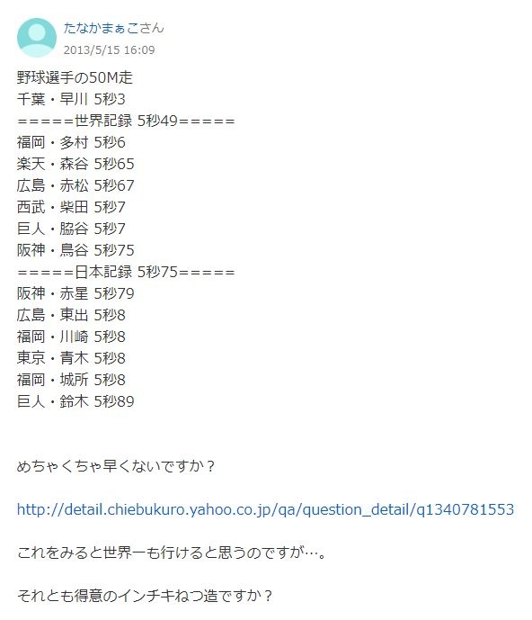 X民「野球とかサッカーの『50m5秒台』ていう自己申告タイム、陸上部からするとマジで引っかかるwww」←10万いいね