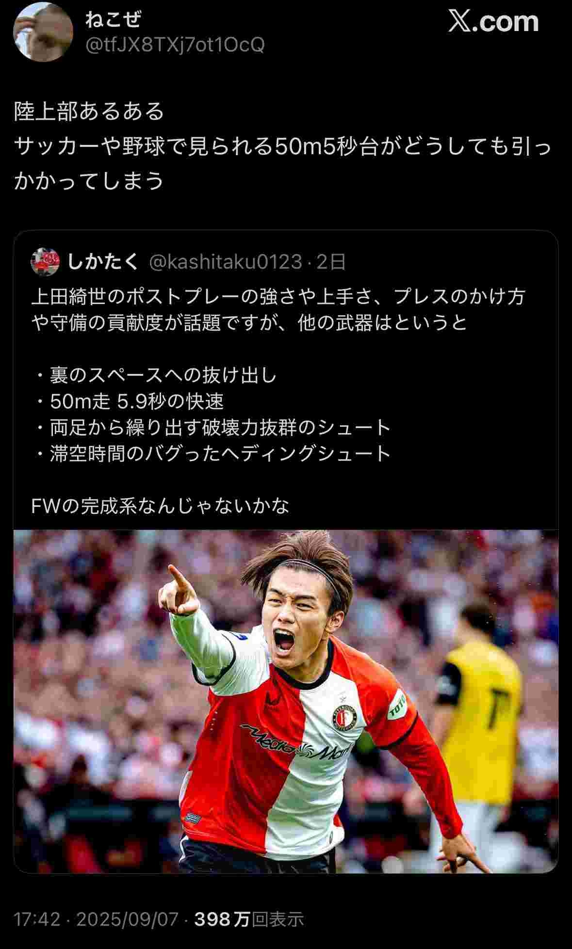 試合見てたら上田が快足なんて感じるわけないわ - 25 : 2025/09/09(火) 14:13:47.041 ID:bepbBV5Gj