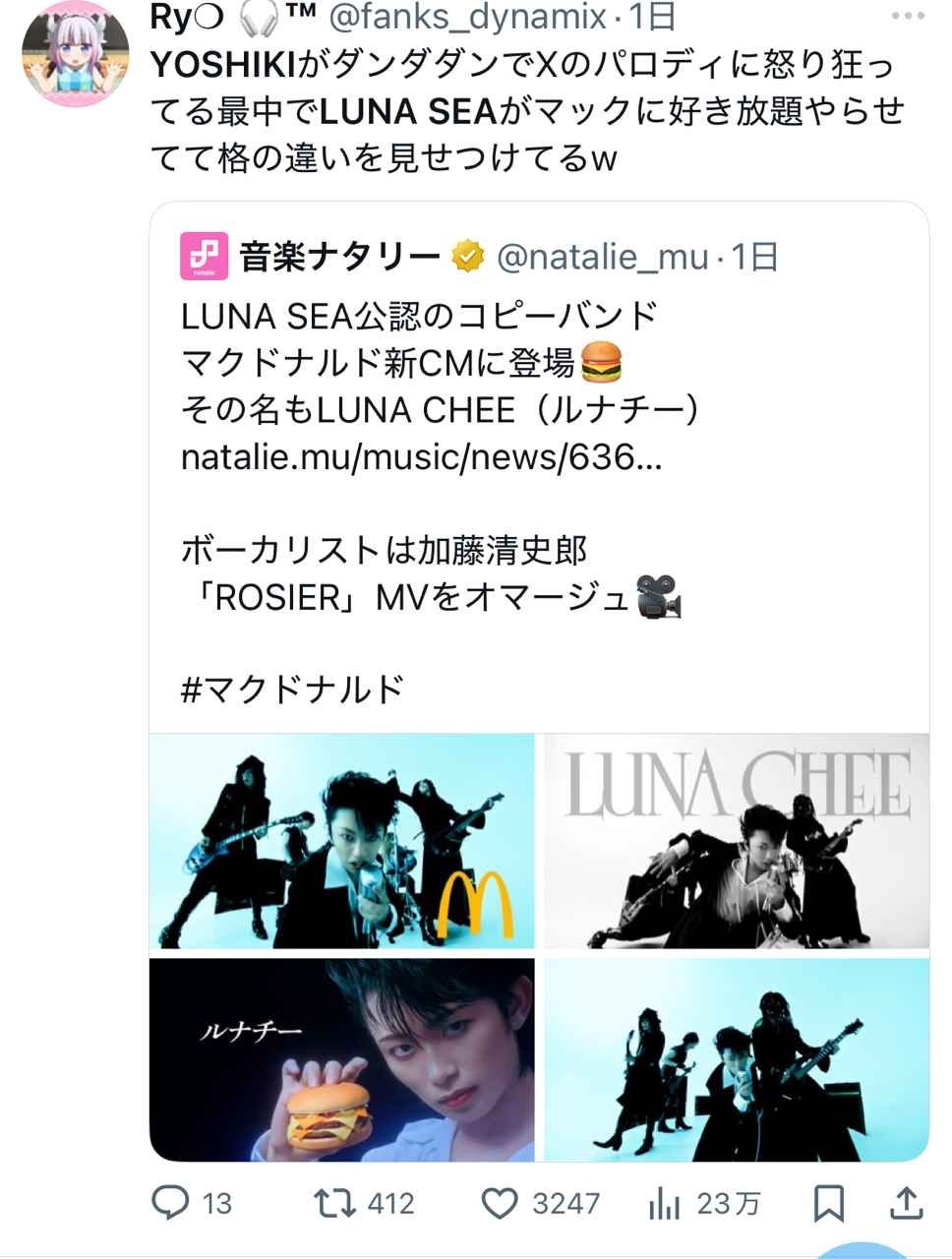 YOSHIKIさん、LUNA SEAがマックに自身のパロディを許したことで余計叩かれてしまうwww